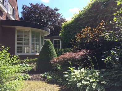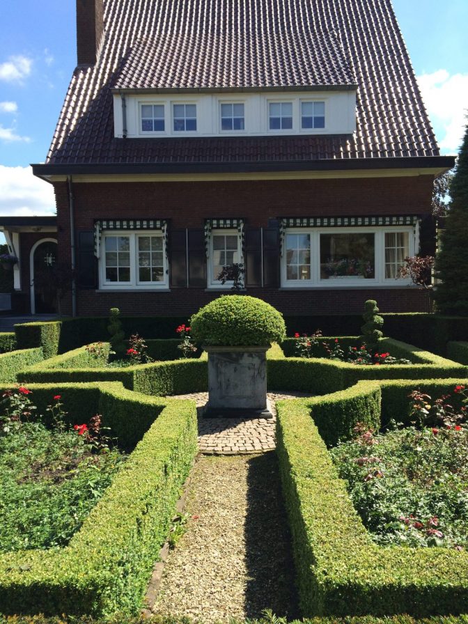 Gemert klassieke voortuin door Johan van de Kerkhofjan 4, 2017 ← Vorig bericht ← Gemert leef tuin Symmetrie is het woord dat centraal staat binnen deze voortuin. Deze symmetrie zorgt voor rust en versterkt het karakteristieke huis. Spanning is gecreëerd door de grote den die het geheel doorbreekt.